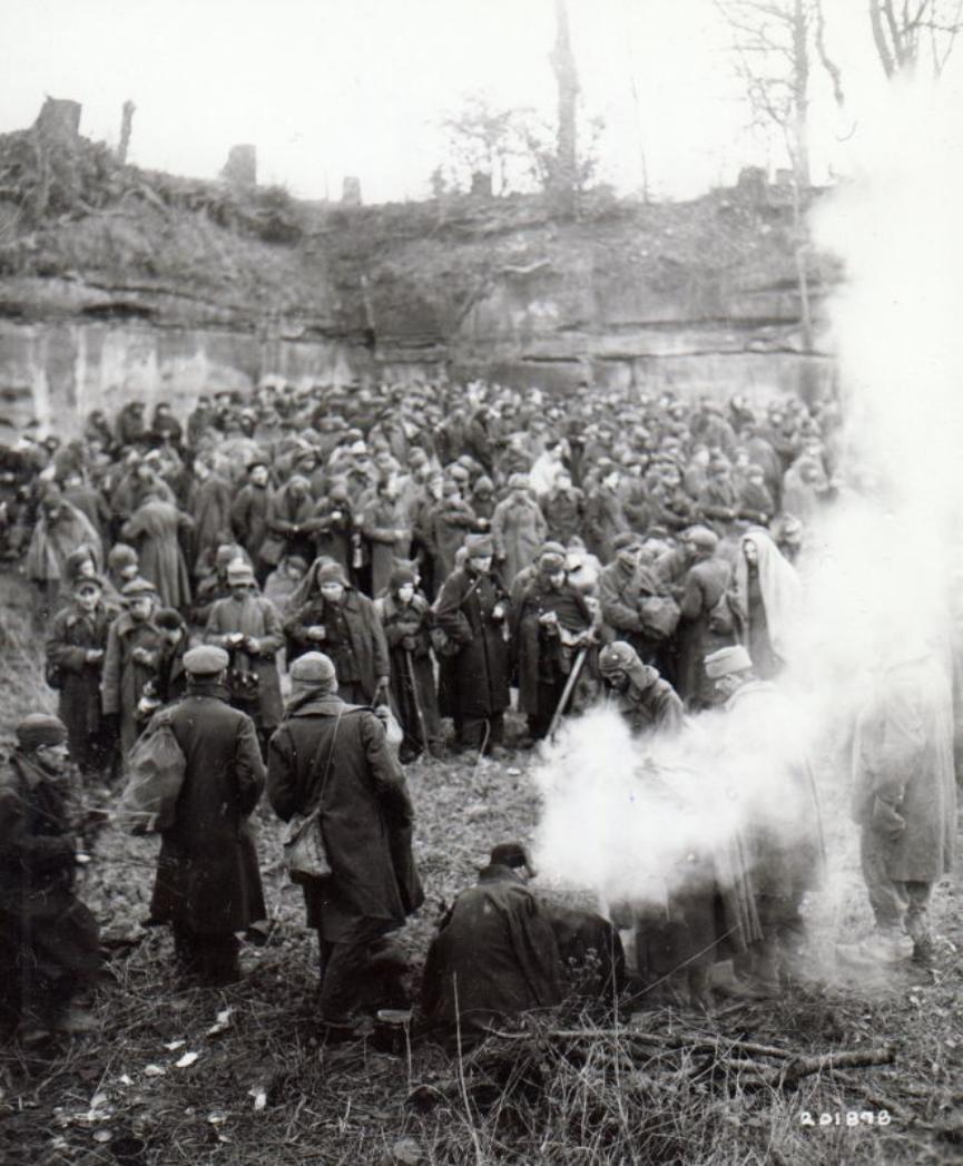 На фотографии: бывшие югославские и советские военнопленные ждут транспортировки в тыл во французской коммуне Эцлен. Франция, 1945 год.