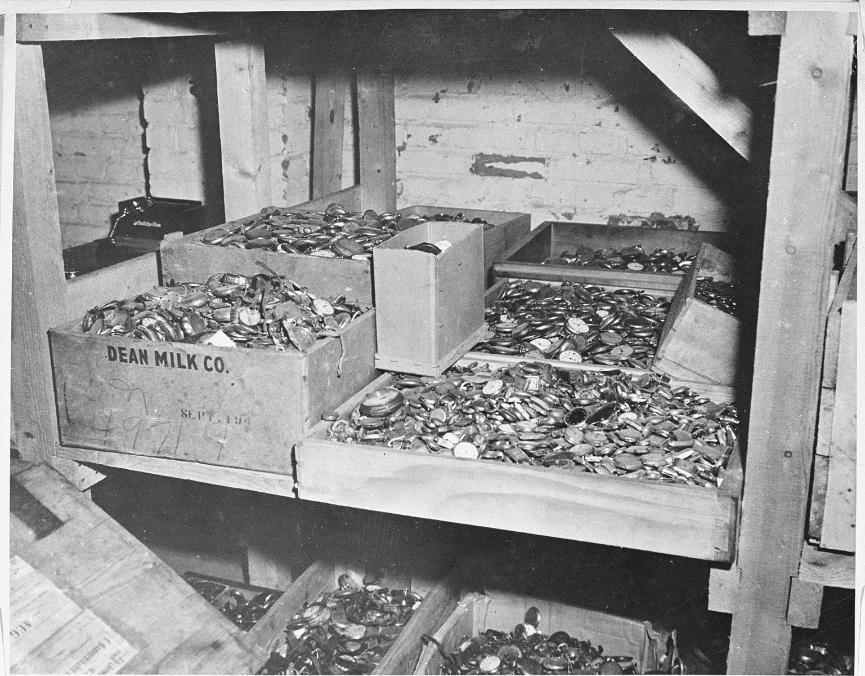Свидетель: Через несколько месяцев после того, как начали поступать вклады «Мельмер», Пуль спросил меня, как обстоит дело с этими вкладами. Я ответил, что вопреки нашему предположению, что эти вклады будут незначительными, они оказались весьма значительными, и наряду с золотыми и серебряными монетами поступало большое количество драгоценностей, золотых перстней и обручальных колец, золотого и серебряного лома. Я также сообщил ему, что в одном случае я получил около двенадцати килограммов жемчуга. Я не видел столько жемчуга за всю свою жизнь. Это был жемчуг и жемчужные ожерелья.