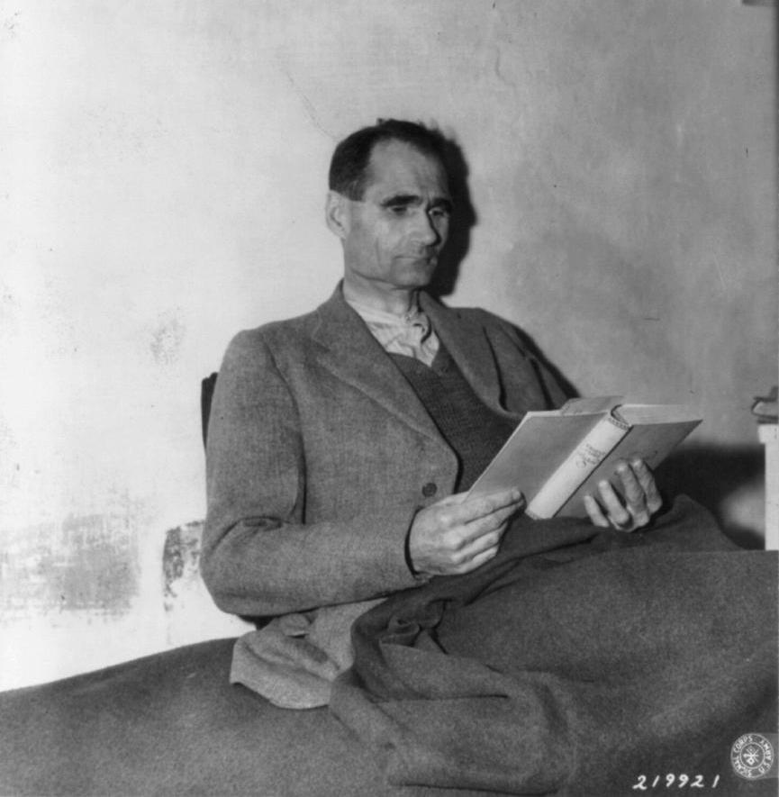 На фотографии: пленный рейхсминистр Рудольф Гесс читает книгу в тюрьме Ландсберг. Германия, 1945 год.