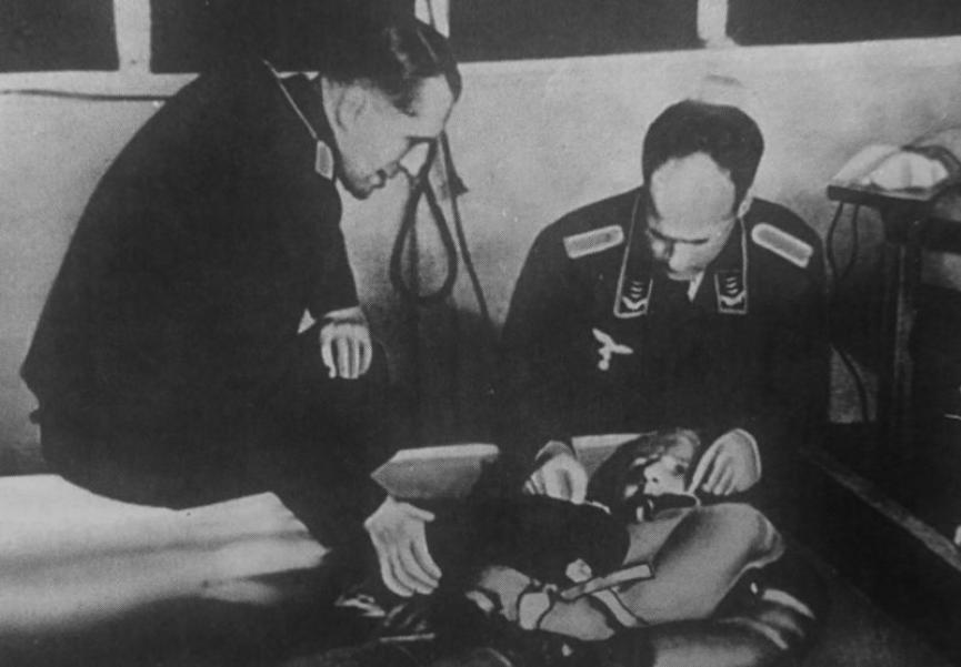 Продолжая допрос, обвинитель неопровержимо устанавливает, что в концлагере Дахау при прямом участии «профессора» Хирта, «доктора» Рашера и свидетеля проводились различные опыты над живыми людьми по замораживанию, изысканию новых кровеостанавливающих средств и т. д.