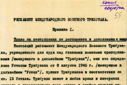 Регламент Международного Военного Трибунала, учрежденного для суда над главными военными преступниками принят в соответствии с Уставом Трибунала.